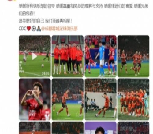 严鼎皓发文感谢成都蓉城:追寻更好的自己,我们顶峰再相见