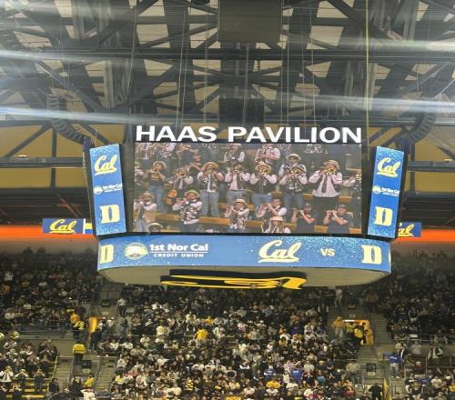 从照片中可以看出,他们正在观看的是加州大学伯克利分校对阵杜克大学的比赛。