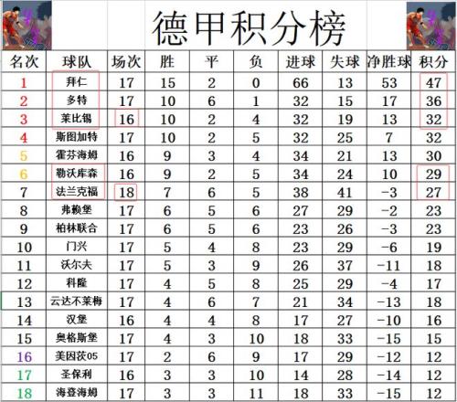 德甲最新积分战报法兰克福绝平无力追药厂拜仁迎下半程关键一战